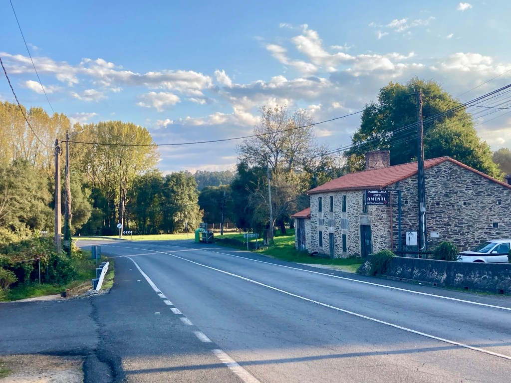 A shorter 14 mile day to Amenal Spain. Another busy day with hundreds of pilgrims that all start early morning and stop at the various coffee places and bars along the way.