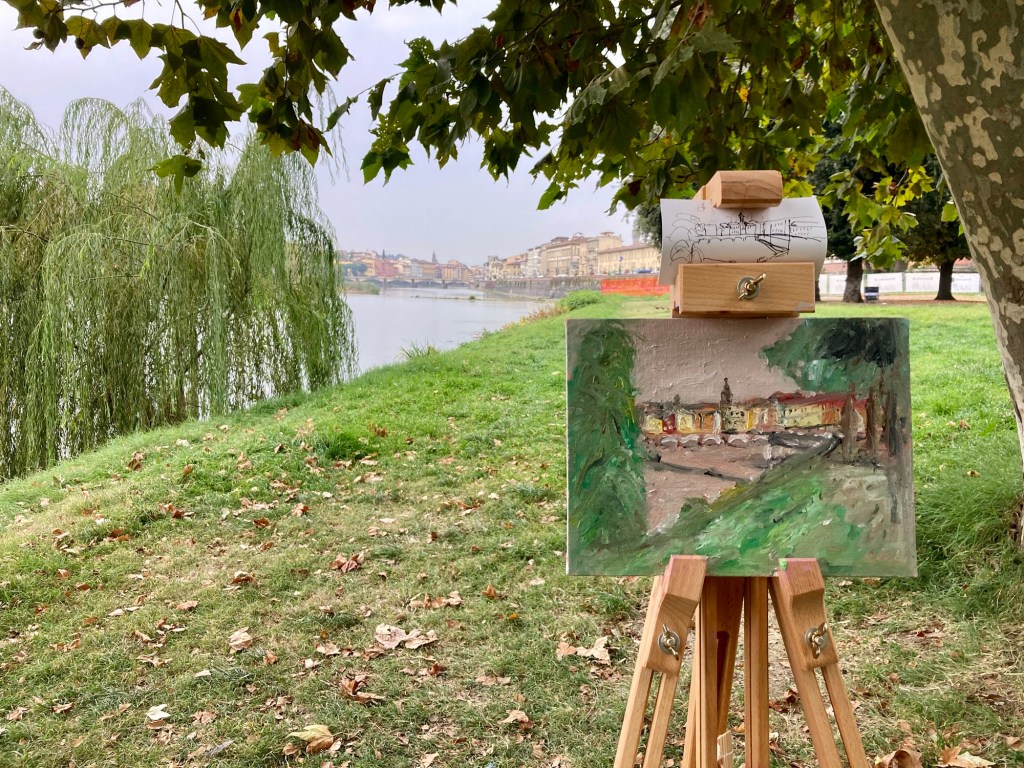 In the afternoon I visited the same painting spot as yesterday but focused on the Ponte alle Grazie bridge this time. The long coming heavy rain made for a cloudy painting session today. Heavy rains are predicted for the next few days.
