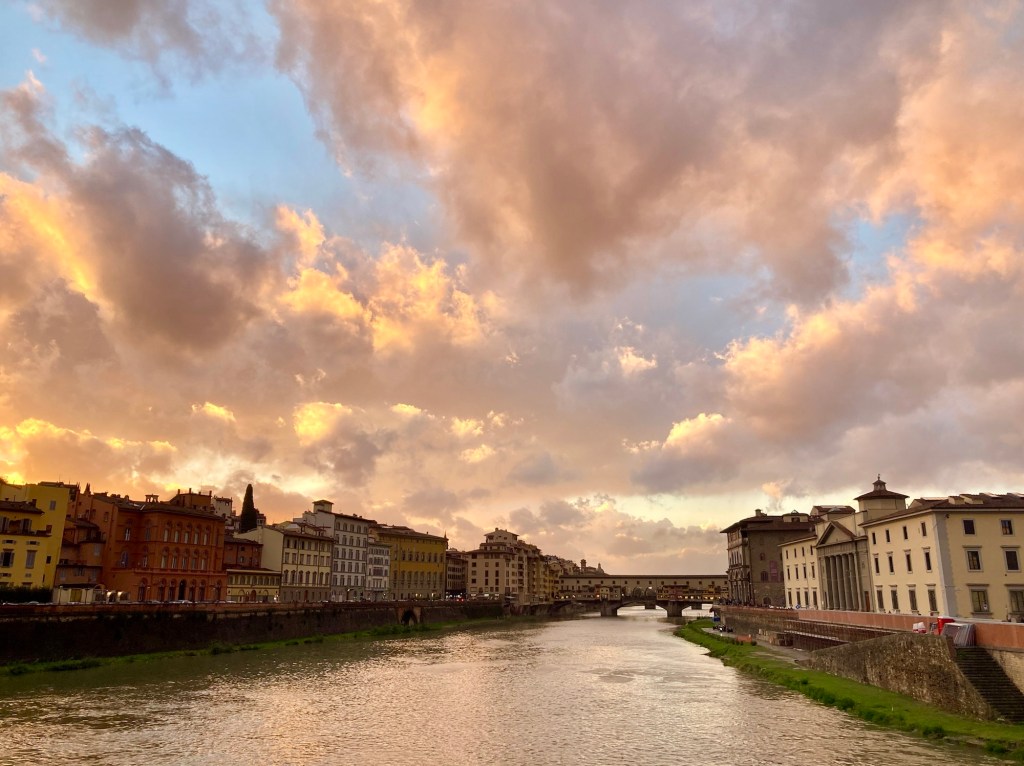 The rain has arrived to Florence so the walks to the hill communities or sunset views on the Arno River are fit between the heavy rains at times.