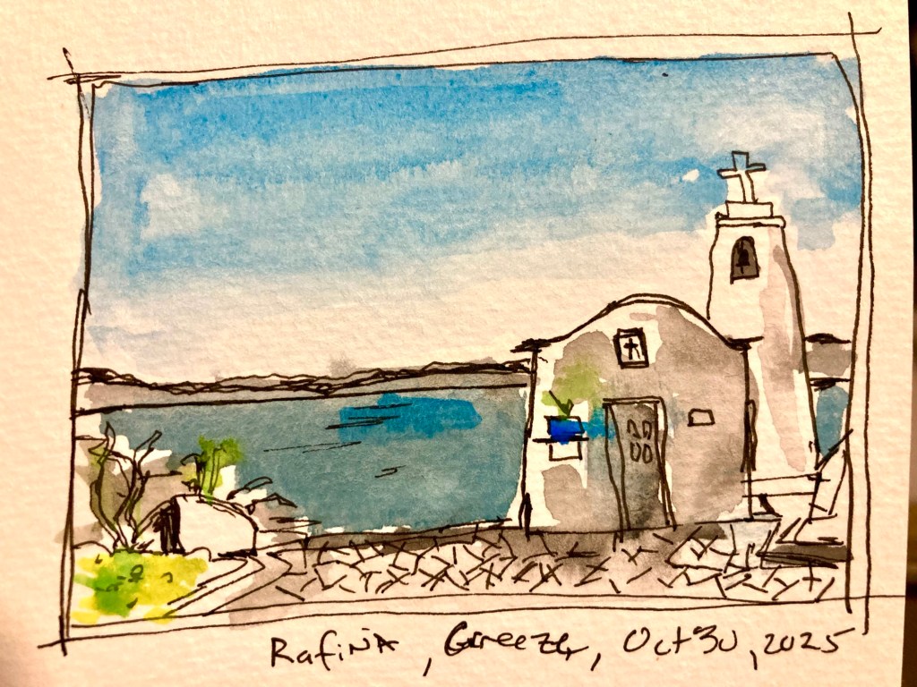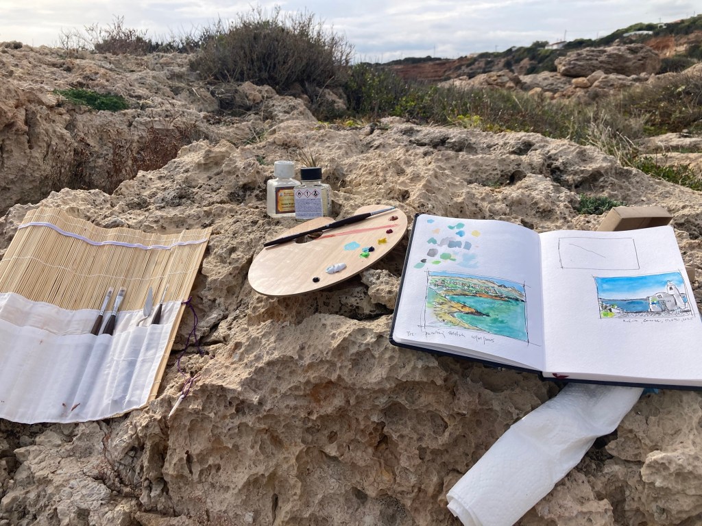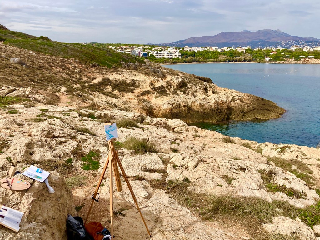 This morning was spend walking the coast line near Rafina and finding a suitable scene to paint.