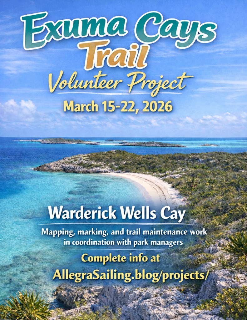 A very coolish week or so but keeping busy organizing a trails project in the Exumas and a trail angel conference in Pinecrest in May. The indoor pickleball a few days a week and boaters Thursday social and connecting with crew and family nearby in Fort Pierce. I stayed at their house during two really cold nights as the boat does not have heat!