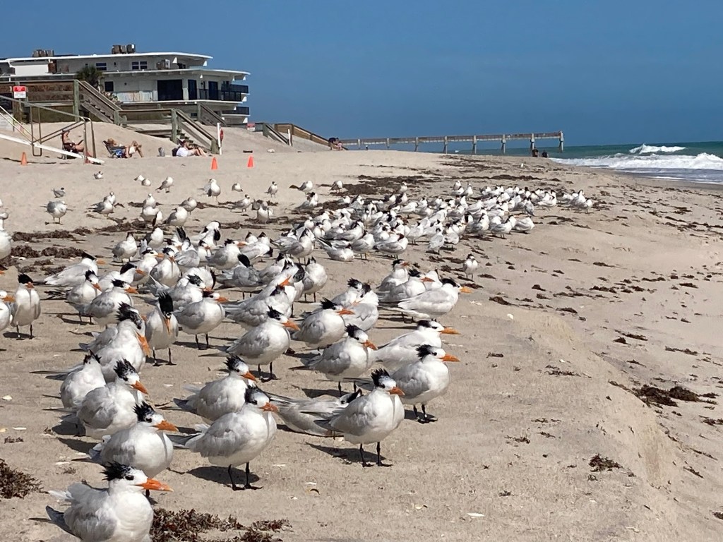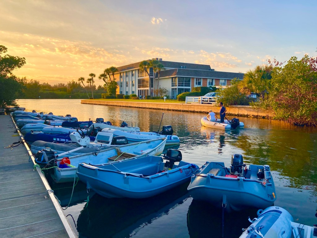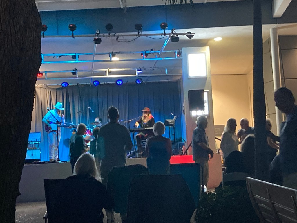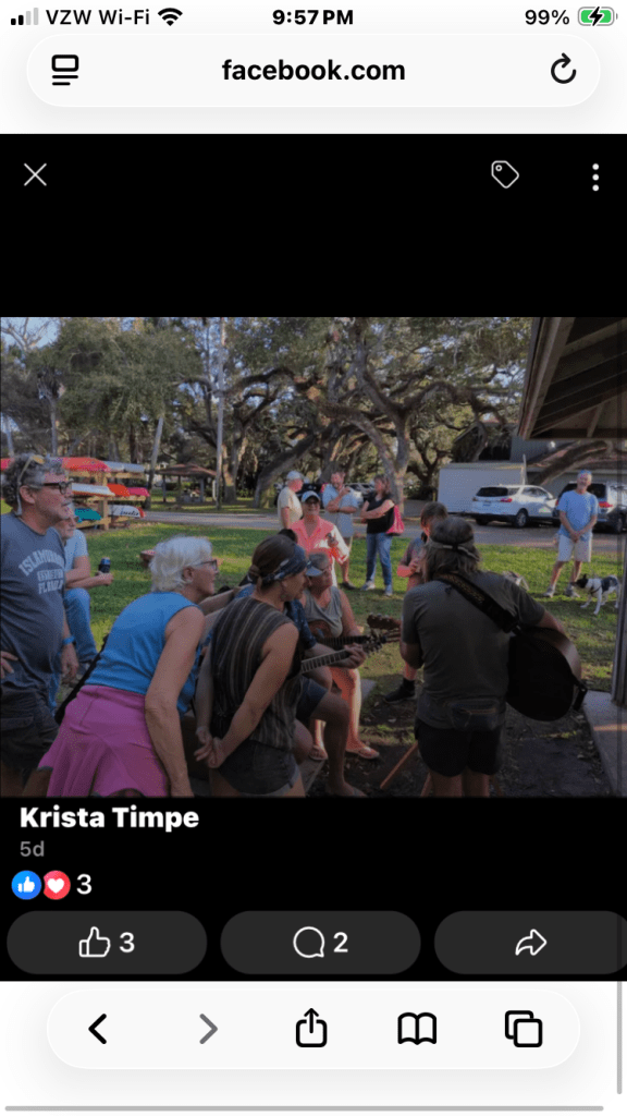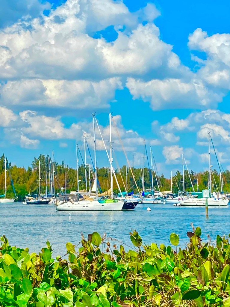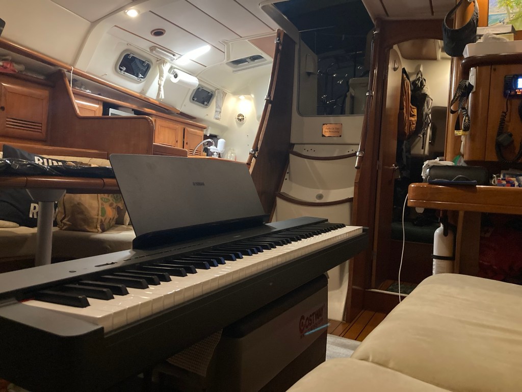Monday, Wednesday and Friday morning are filled with pickleball and the community there. Thursday afternoon are the cruiser socials now with some guitar jamming with other cruisers. Monday night is the piano bar night on Allegra. Other nights are free concerts at an outdoor venue walking distance away. Morning walks and runs along river and stopping for coffee with the finishing walk on the Atlantic. Weather warmed up for pleasant kayak paddles in the river with pods of dolphins following around.
