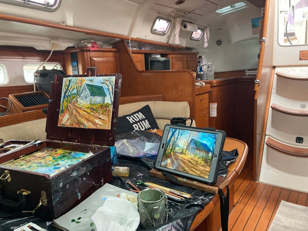 A bit more time preparing for launch on March 2 with some time to visit with cruisers and paint some pictures and enjoy the few days of warm weather that finally arrived.