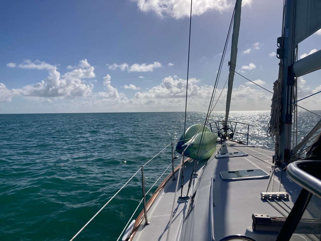 We left no name harbour after waiting about 3 days for the wind direction to shift more southerly to enable us to sail there. It never did fully rotate enough but we decided to mostly motor there on Monday. During this 24 hour passage, the motor quit at about 12:30 midnight due to fuel issues during 12-2 shift watch. We replace an engine fuel filter that allowed the engine to run at 1/2 speed for the next 12 hours to arrive at great harbour cay ij the Bahamas.