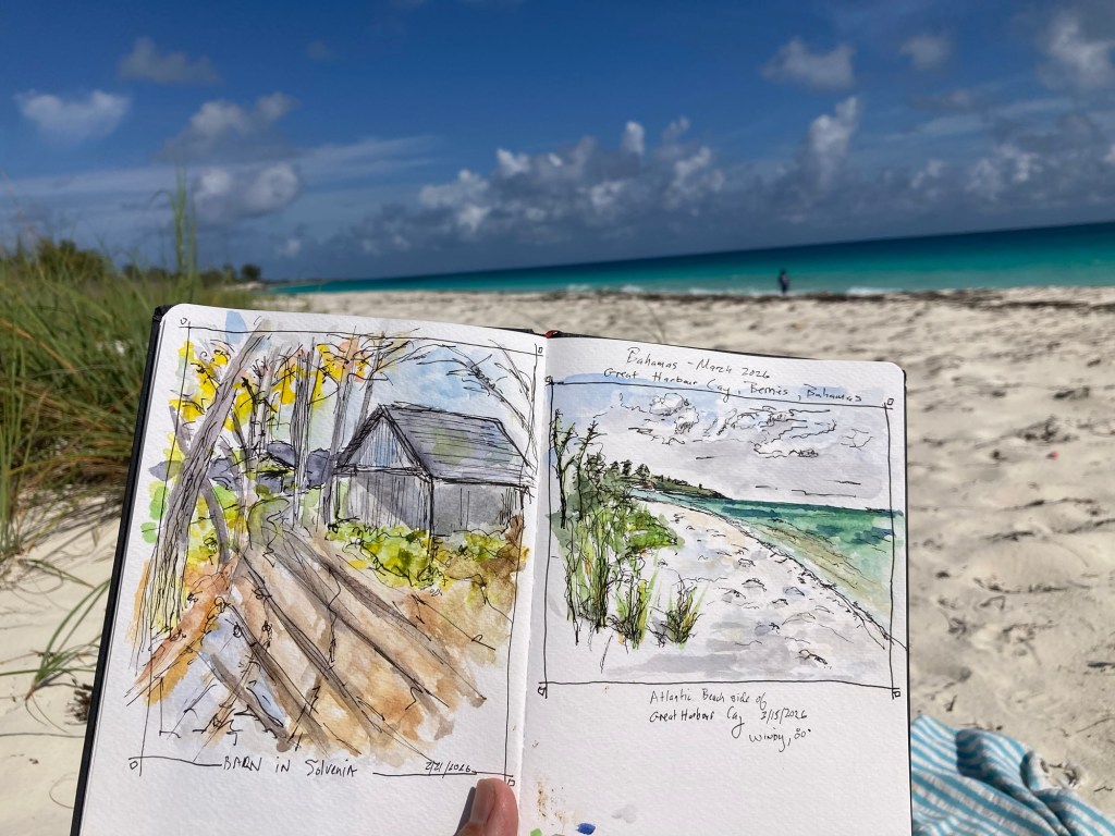 Some time for pen and water color sketches on empty beaches and dinners with other nearby cruisers.