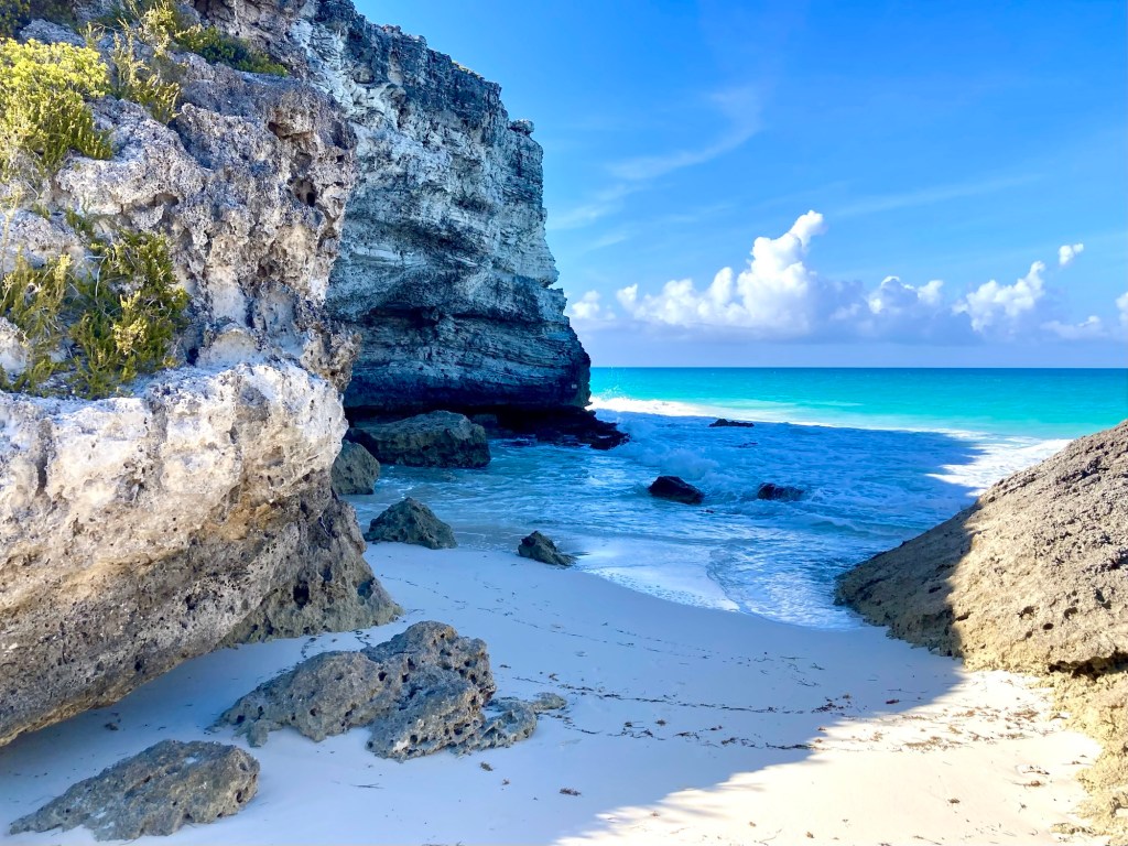 Biking or hiking around the island will offer one with a view of these ultramarine colored water with blowing palm trees and scattered houses on the shores. Places on the island offer higher rocky cliffs and caves. The interior offers large mangrove forest bays.
