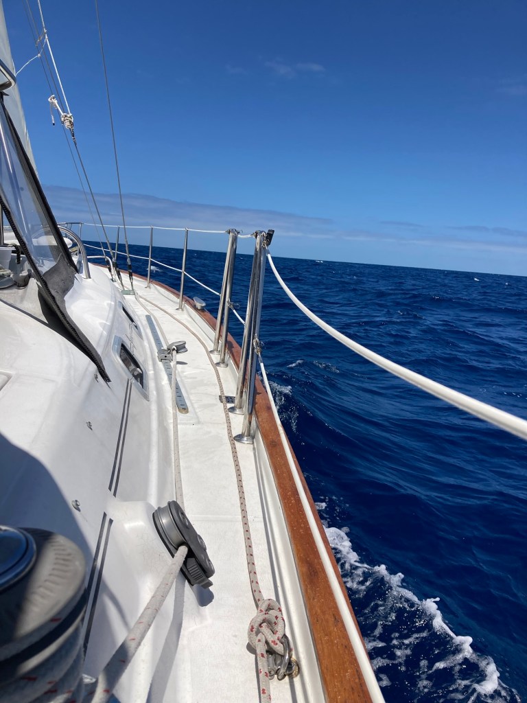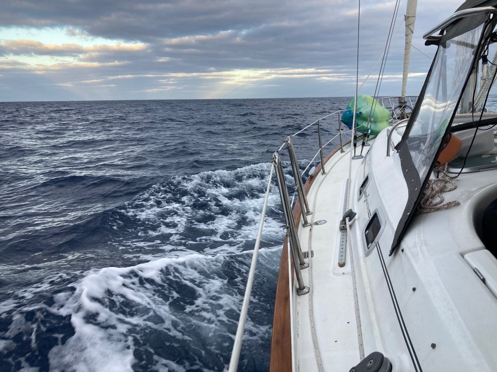 We decided to do the crossing in two 13 hour 84 mile days, mostly during the day. the first day was great wind and moderate seas. The second day lack wind but calmer seas requiring more motoring.
